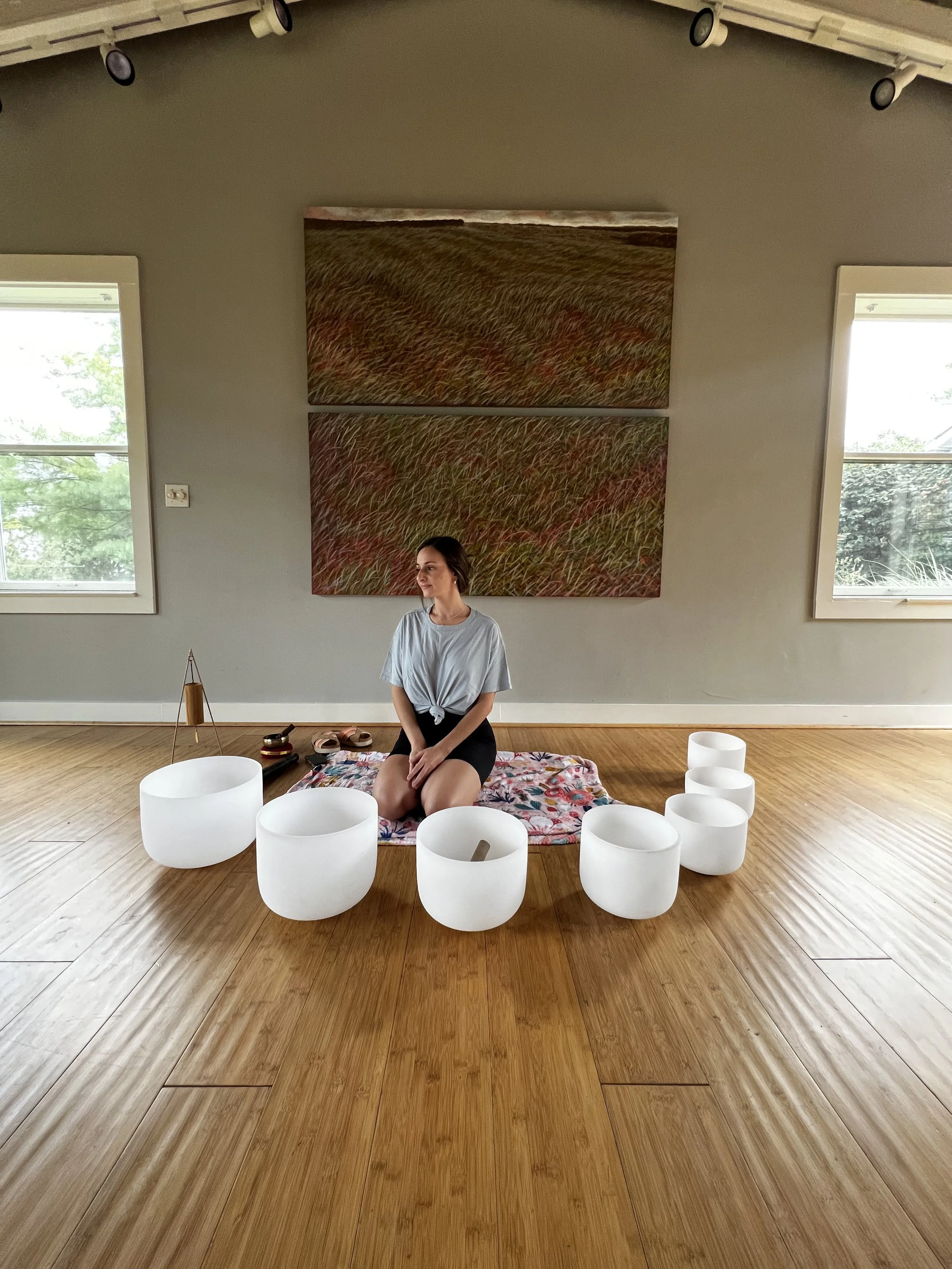 I like to describe it as just that- bathing in sound! It’s a time to disconnect from our fast paced environments, slow down for an hour, and restore ourselves. Using the crystal singing bowls help our bodies fall into their most relaxed state and that is when we can do the most healing from within- mind, body, and spirit. Bring a yoga mat, blanket, and pillow if you want to get extra cozy! The beginning of my sessions start with guided breathing and relaxation techniques, and then I let the singing bowls take over. Sessions are typically closed out with the rainstick and koshi chime, followed by a brass singing bowl. Then we all collectively take a few deep breaths in and out, and that completes the sound bath.